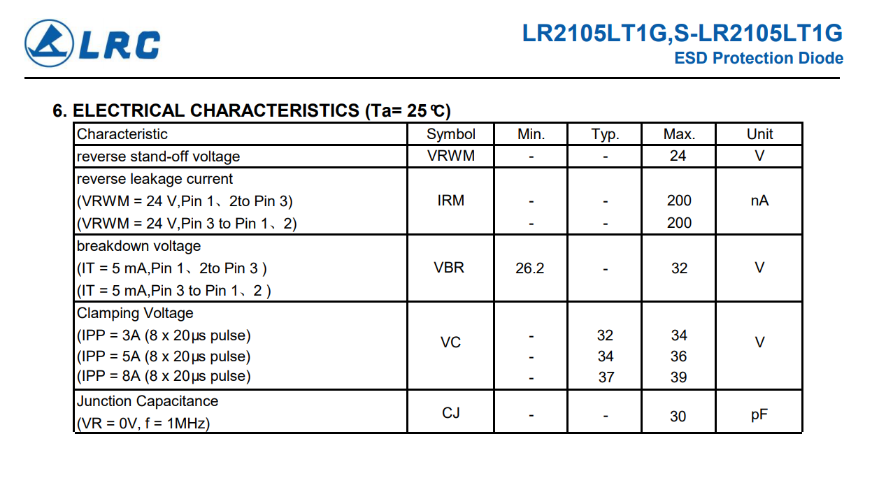 LR2105LT1G 静电保护二极管