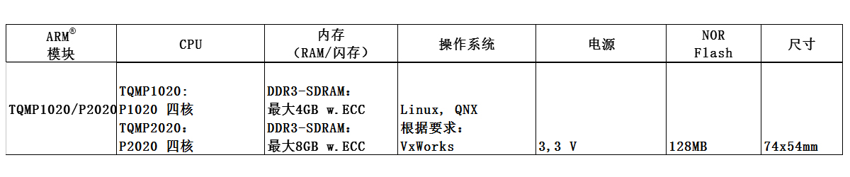 TQMP1020 模块参数: